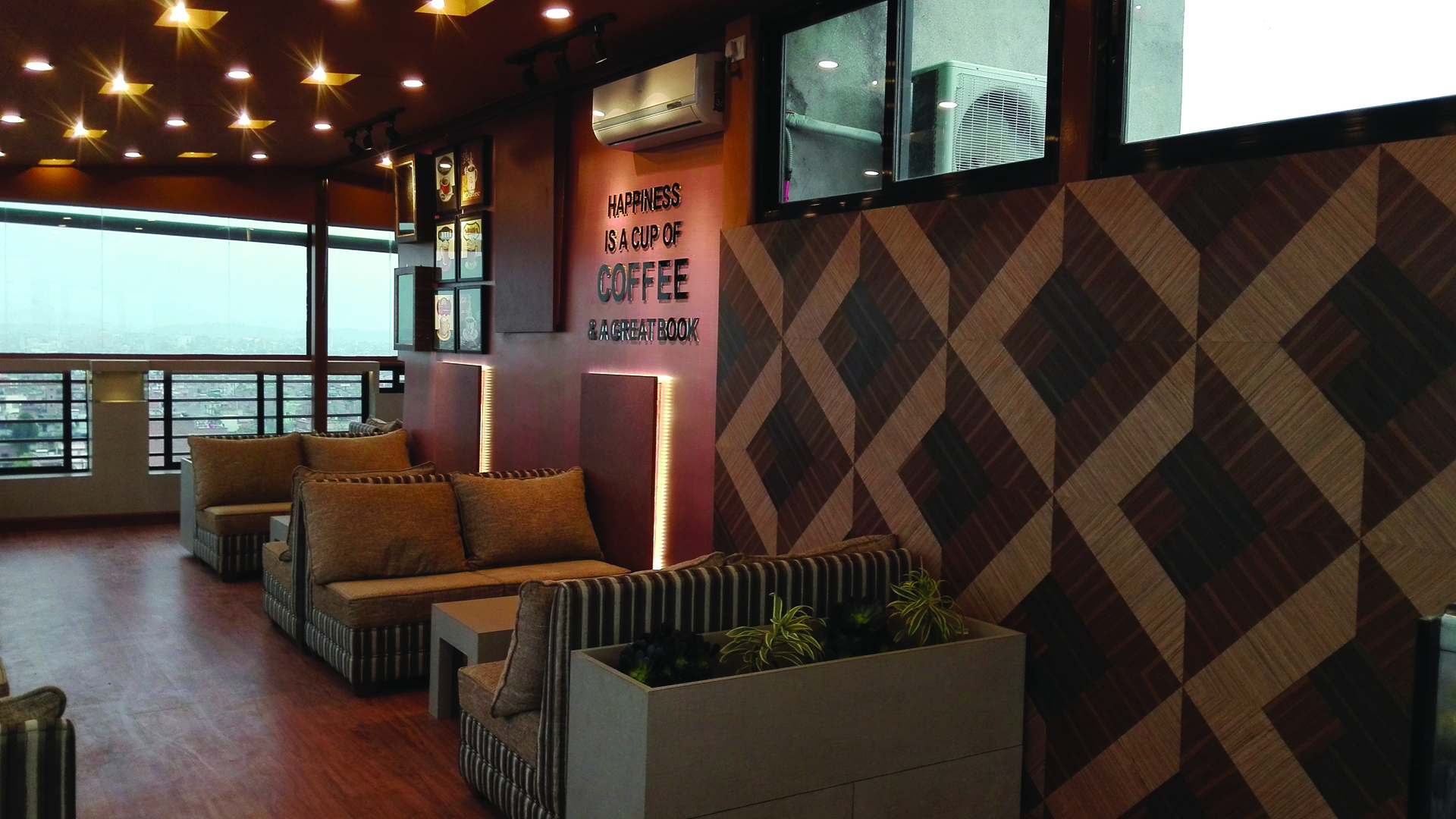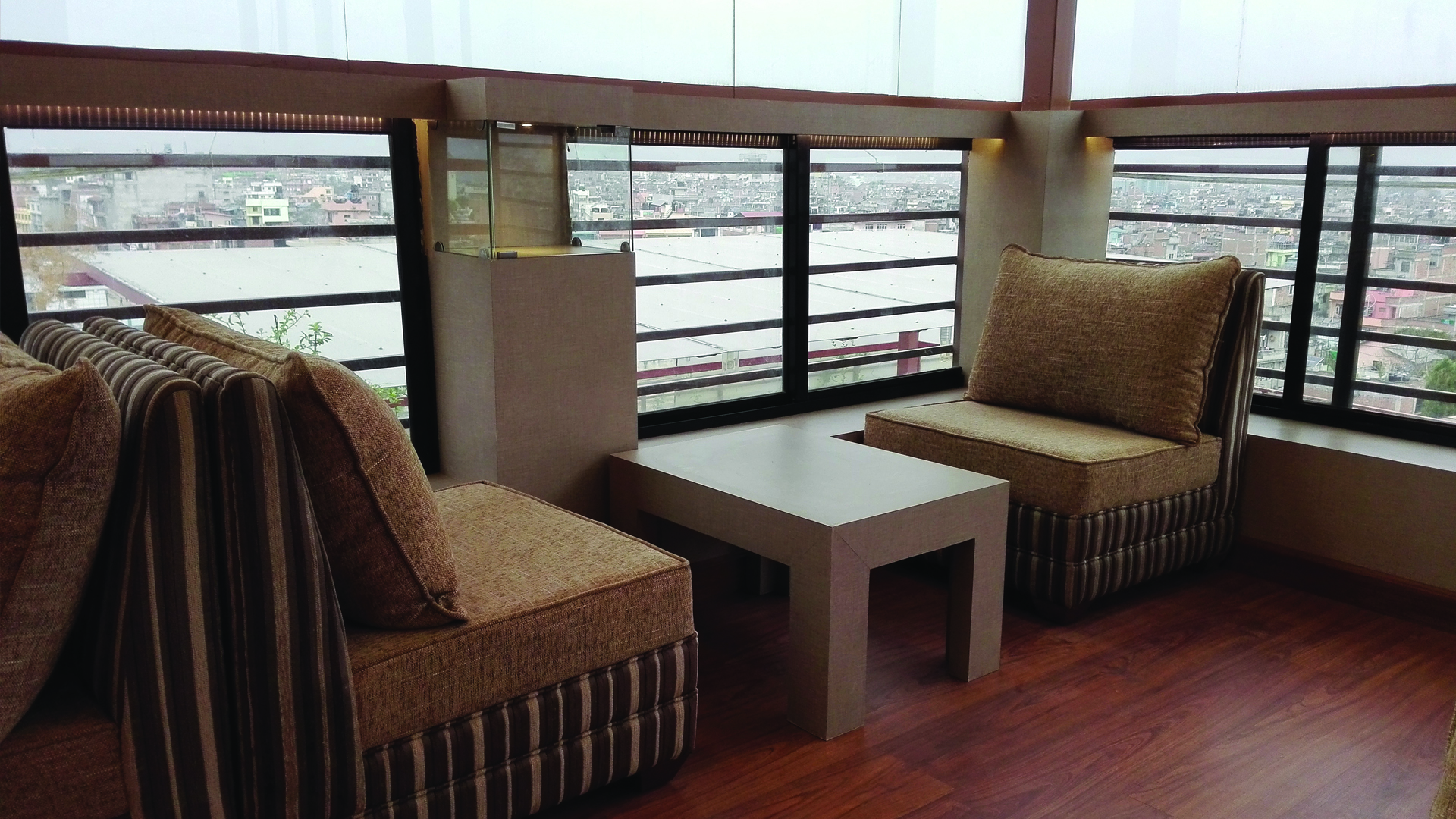 Café de horizon by its name itself is located in the top most level of Ai-la Restaurant and lounge providing a spectacular skyline view of Kathmandu Valley. It is a refurbishment project. The coffee shop was a part of Ai-la Restaurant and lounge limited to serving coffee after refurbishment it has become an enhancing feature of the restaurant. The coffee shop re-design focus on creating a private, cozy, quiet and environment apart from the restaurant area in lower terrace. This has been created with combination of shades of brown and beige, with cozy sofa arranged to get most exterior view. The false ceiling has been designed with small rectangular void which provides skylight during the daytime and lit with small lights giving a night sky touch. The main constrain of the project was lift machine room access door from the coffee shop itself. This has been carefully amalgamated to a feature wall designed.